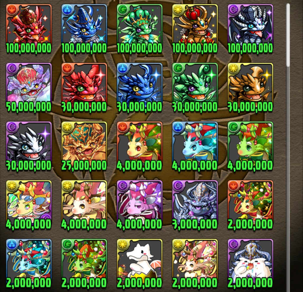 In today’s fodder, the 30m/100m XP dragons – sell for 30 MP or 100 MP.